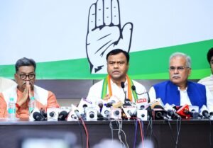 रायपुर :- प्रदेश कांग्रेस मुख्यालय राजीव भवन में प्रदेश कांग्रेस अध्यक्ष दीपक बैज, नेता प्रतिपक्ष डॉ. चरणदास महंत, पूर्व मुख्यमंत्री भूपेश बघेल और कांग्रेस के वरिष्ठ नेताओं ने पत्रकार वार्ता लेकर आरोप लगाया कि