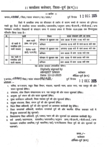 दुर्ग ज़िला प्रशासन ने ठंड के मौसम को देखते हुए स्कूल के समय में बदलाव का आदेश जारी किया है। नए आदेश के अनुसार, स्कूल अब दो शिफ्ट में चलेंगे। पहली शिफ्ट सोमवार से शुक्रवार सुबह 8:00 बजे से 11:45 बजे तक और शनिवार को दोपहर 12:15 बजे से शाम 4:15 बजे तक चलेगी। दूसरी शिफ्ट सोमवार से शुक्रवार दोपहर 12:00 बजे से शाम 4:45 बजे तक और शनिवार को सुबह 8:00 बजे से दोपहर 12:00 बजे तक चलेगी। सिंगल शिफ्ट स्कूल सोमवार से शुक्रवार सुबह 10:00 बजे से शाम 4:00 बजे तक जबकि शनिवार को सुबह 8:00 बजे से दोपहर 12:00 बजे तक चलेगी